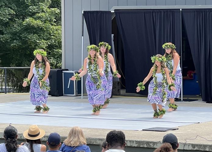 Dancers from Kamokunani Hula Halau, a Polynesian dance school in Bloomington, perform at the annual Cultural Fest in Bloomington.