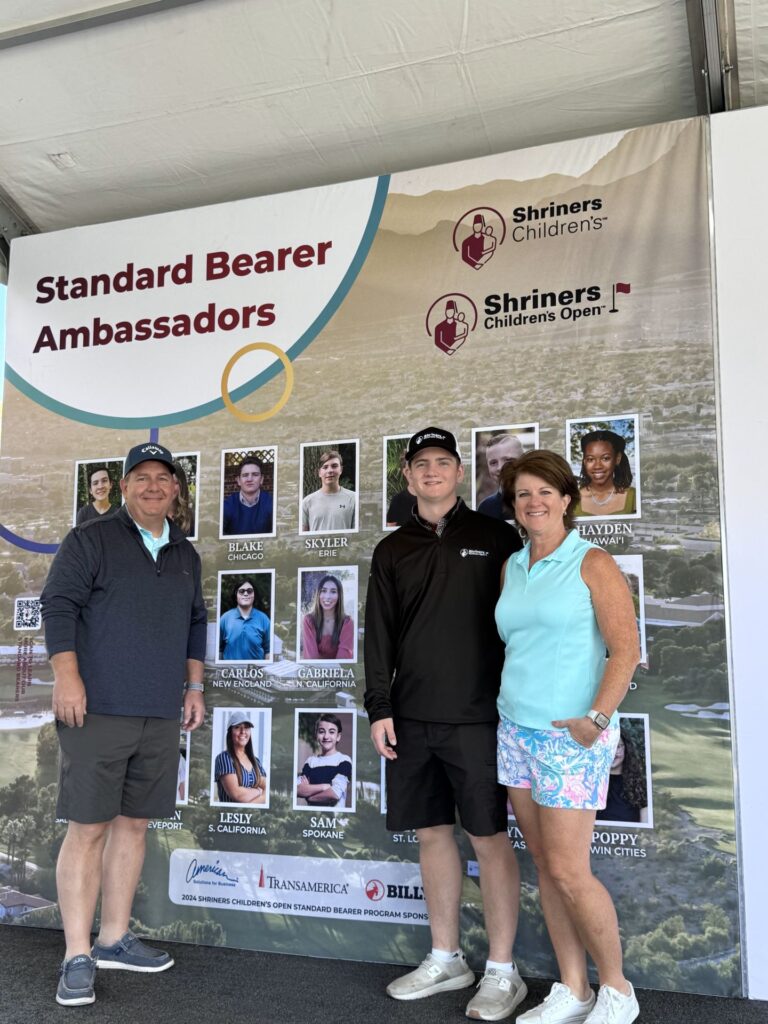 Blake Meyer, right, was a walking standard bearer during the Shriners Children’s Open.