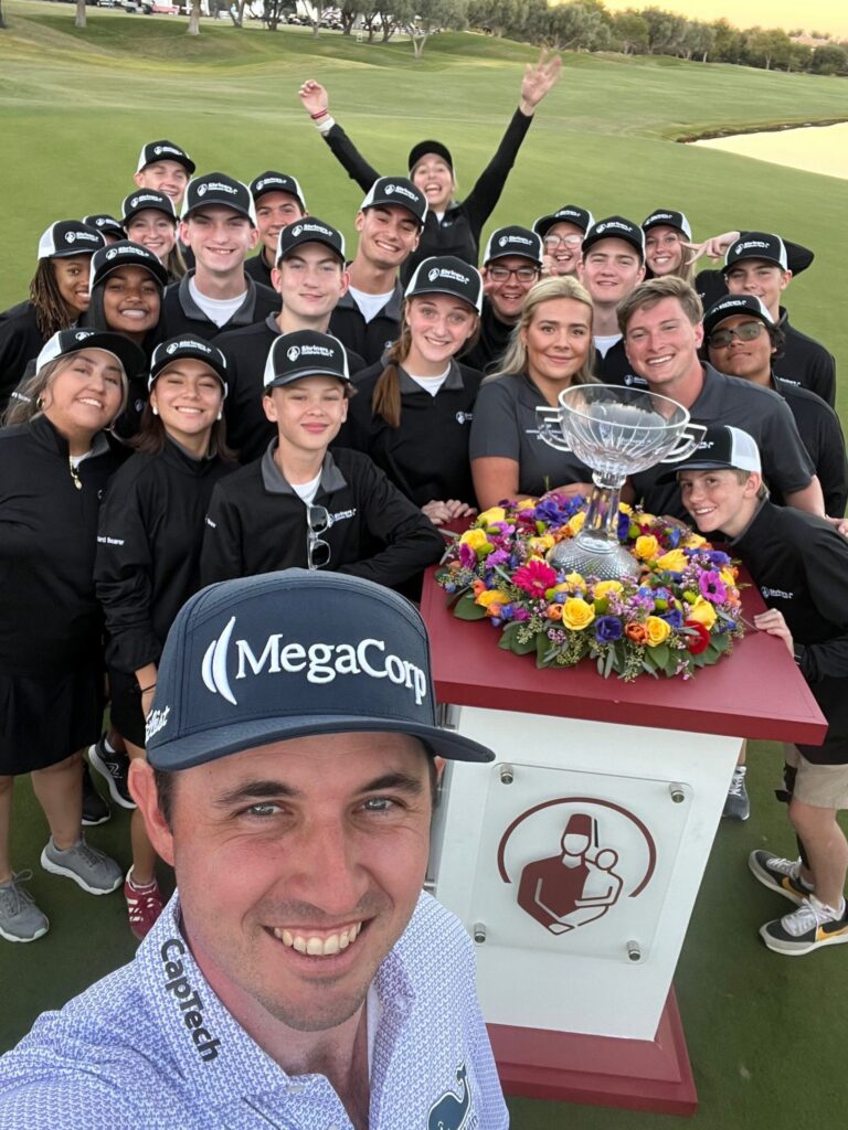 J.T. Poston, tournament champion, poses with the Shriners patient ambassadors.